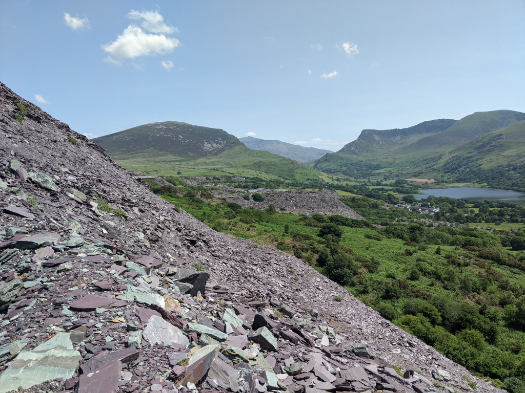 Limited space for waste disposal downhill led to construction of a long spoil bank to the west; later tipping shifted north, served by a winding locomotive line. Before the Nantlle Railway existed, finished slate was shipped via Foryd and trans-shipped at Caernarfon. The quarry eventually gained access to the Nantlle Railway through an incline via Tal y Sarn quarry, later extended to connect with the Robinson Tramway serving Y Fron quarries. In 1881, with tipping encroaching and the tramway made redundant by alternative rail access from Y Fron, a new incline was built two hundred yards to the east. This was abandoned in 1923 when Cilgwyn secured direct access to the North Wales Narrow Gauge Railway via the “horseshoe” tipping line.